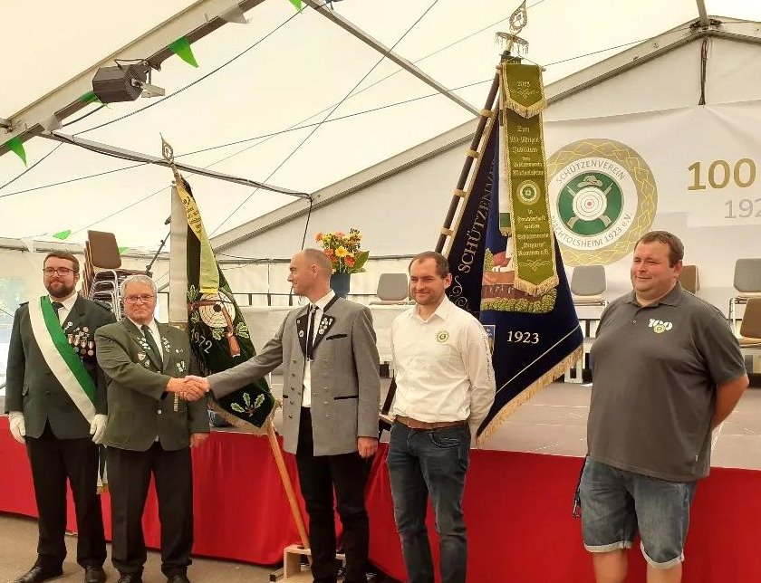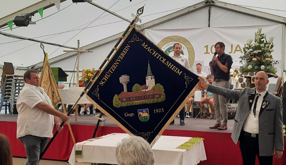 Festgottesdienst am Sonntag mit Fahnenweihe der neuen Vereinsfahne. Unser Partnerverein "Bergkette" Nammen hat die Patenschaft für unsere neue Fahne übernommen.