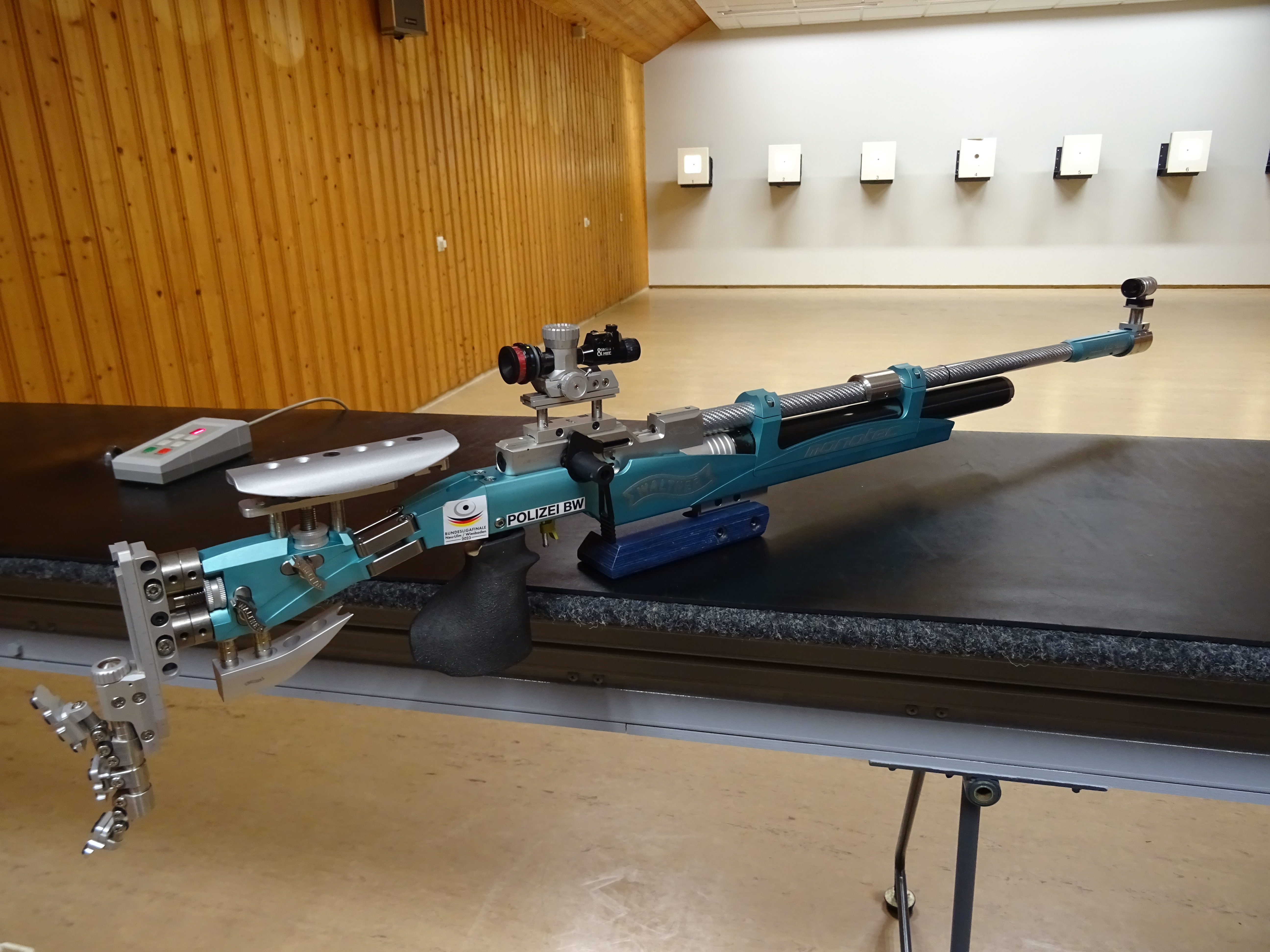 In unserem Schützenhaus kann auf zwei Schießständen mit jeweils sieben Anlagen Luftgewehr geschossen werden. Auf einer Distanz von 10 Metern wird hier stehend freihändig geschossen, wobei der Schütze ohne Anlehnung und künstliche Stütze stehen muss. Außer dem Gewehr verwenden Luftgewehrschützen ein umfangreiches Equipment: Schießjacke und Schießhose geben dem Körper Halt, dürfen diesen jedoch nicht unzulässig stützen. Spezielle Schießschuhe mit flacher Sohle bieten sicheren Stand und ein Schießhandschuh entlastet die Stützhand.