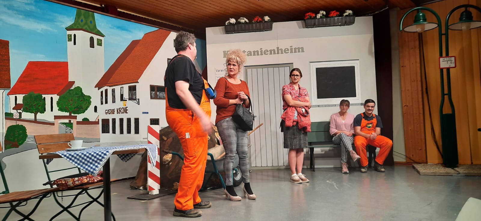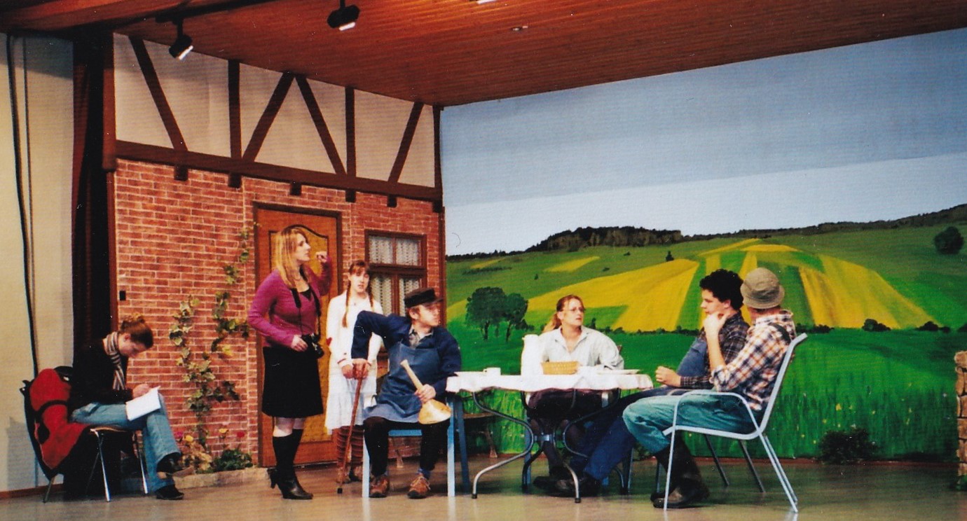 Es war die Idee von unserem Vereinsmitglied und Ehrenvorsitzenden Erich Mändle, wieder eine Laienspielgruppe zu gründen. Theaterspieler zu finden war nicht schwer, berichtete er im Gespräch und so wurden 1979 die Proben zum Stück “Kuvege” (Kuhmistverwertungsgesellschaft) aufgenommen. Das Stück lag archiviert auf dem Speicher des Rathauses und war in der Vergangenheit schon einmal zur Aufführung gekommen. Inzwischen gab es eine Mehrzweckhalle im Ort - die heutige Lindenhalle, so wurde dort das Stück einmalig vor ausverkauftem Haus aufgeführt, wie er berichtete.